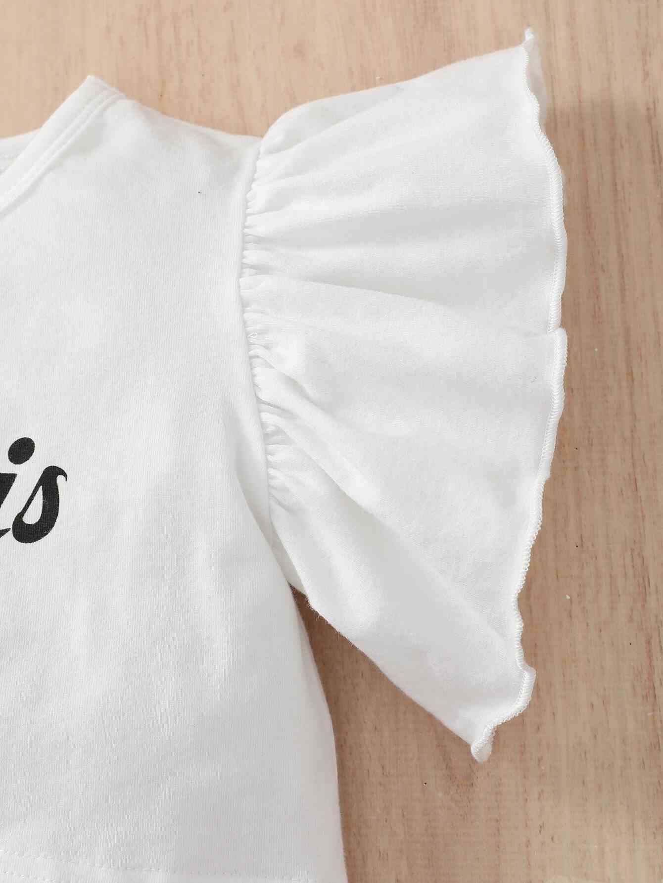 Girls Graphic Butterfly Sleeve Top and Polka Dot Shorts Set